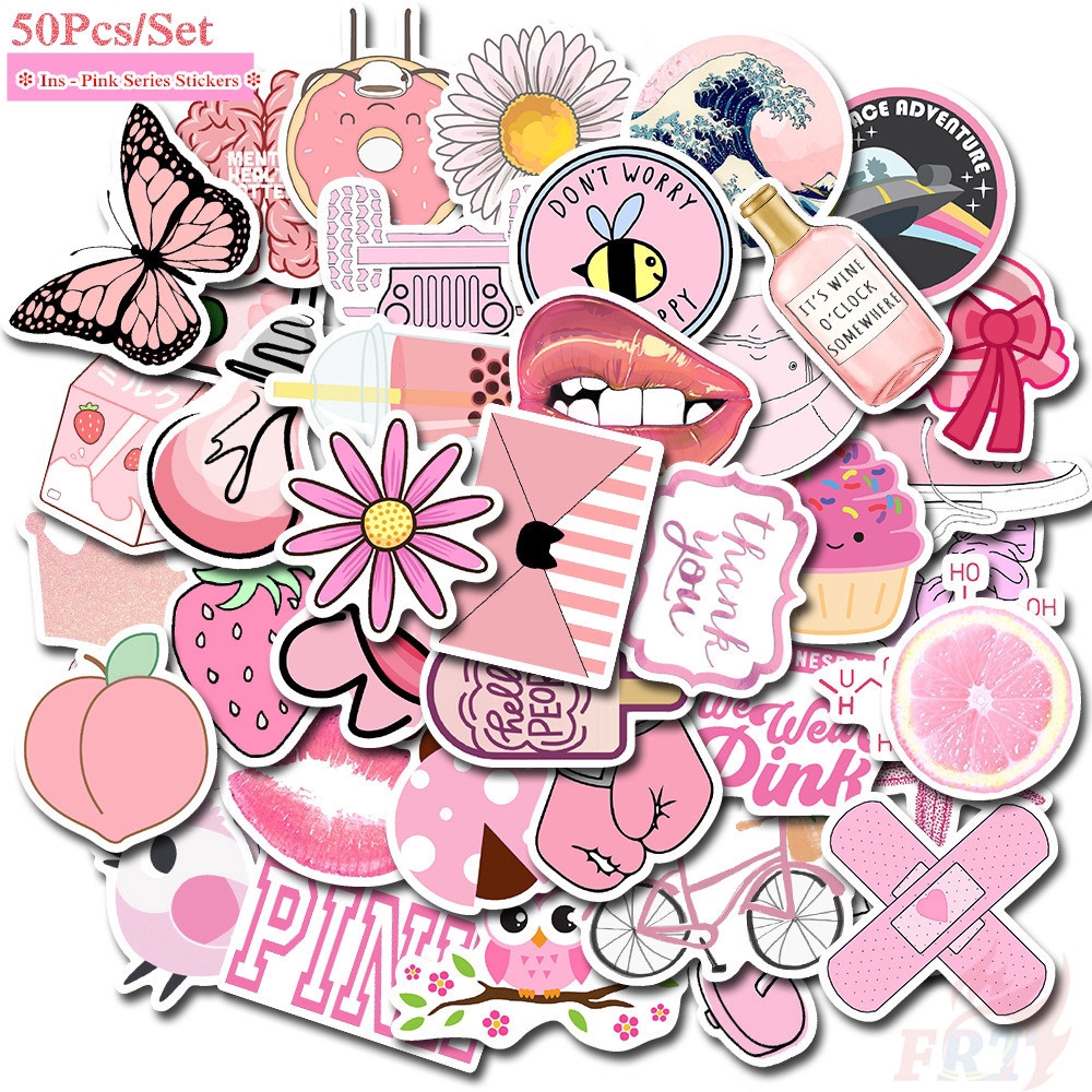 Ins Fashion Vsco Pink Series A Stickers 50pcs Set Mixed