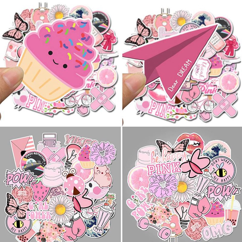 50pcs Cute Cartoon Pink Vsco Sticker Fresh Waterproof Car Bicycle