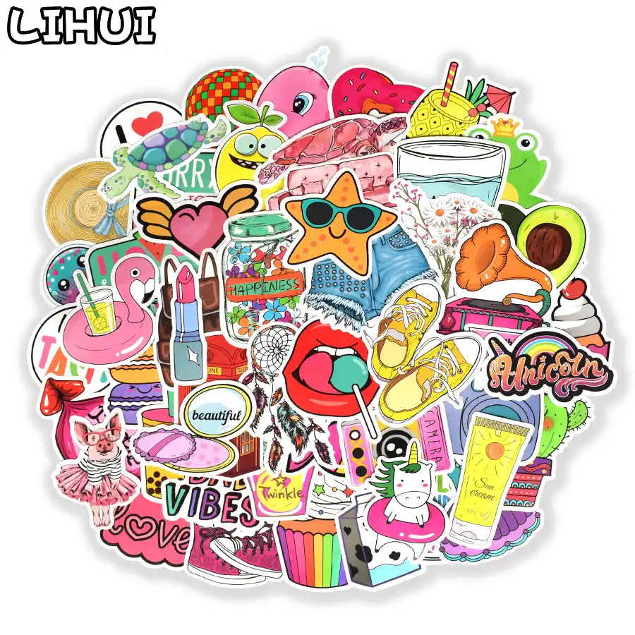 50pcs Cute Kawaii Vsco Stickers Pack For On The Laptop Fridge