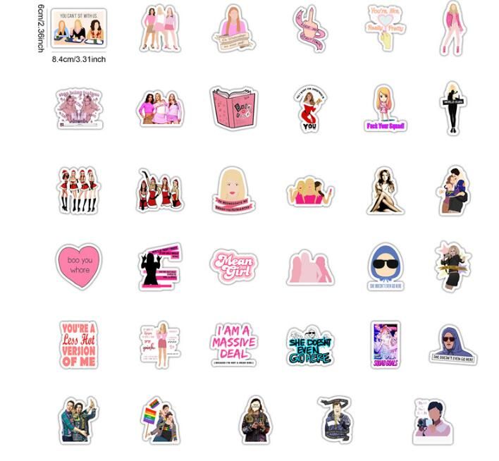 50 Pcs Kawaii Graffiti Stickers Girl Pink Cartoon Anime Waterproof