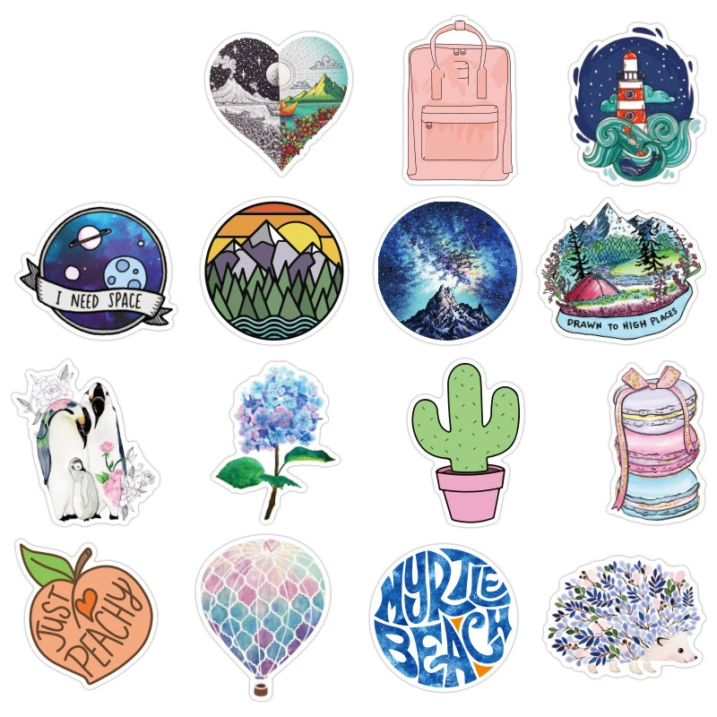 Senarai Harga 50 Pcs Cartoon Simple Vsco Girls Kawaii Stickers For