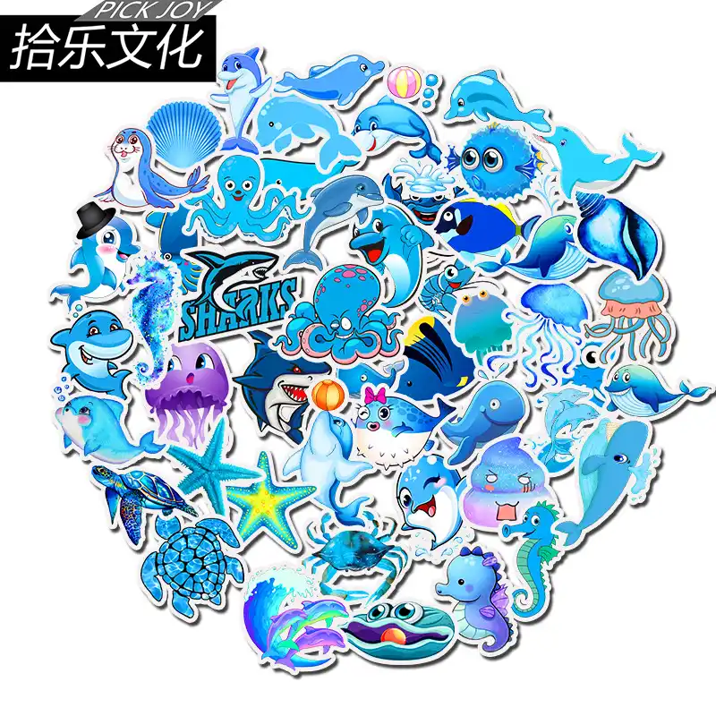 49pcs Pack Blue Vsco Stickers For Children Mixed Ocean Animals