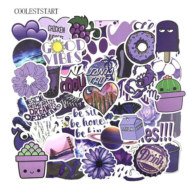 50pcs Pack Purple Fresh Stickers Vsco Stickers For Motorcycle