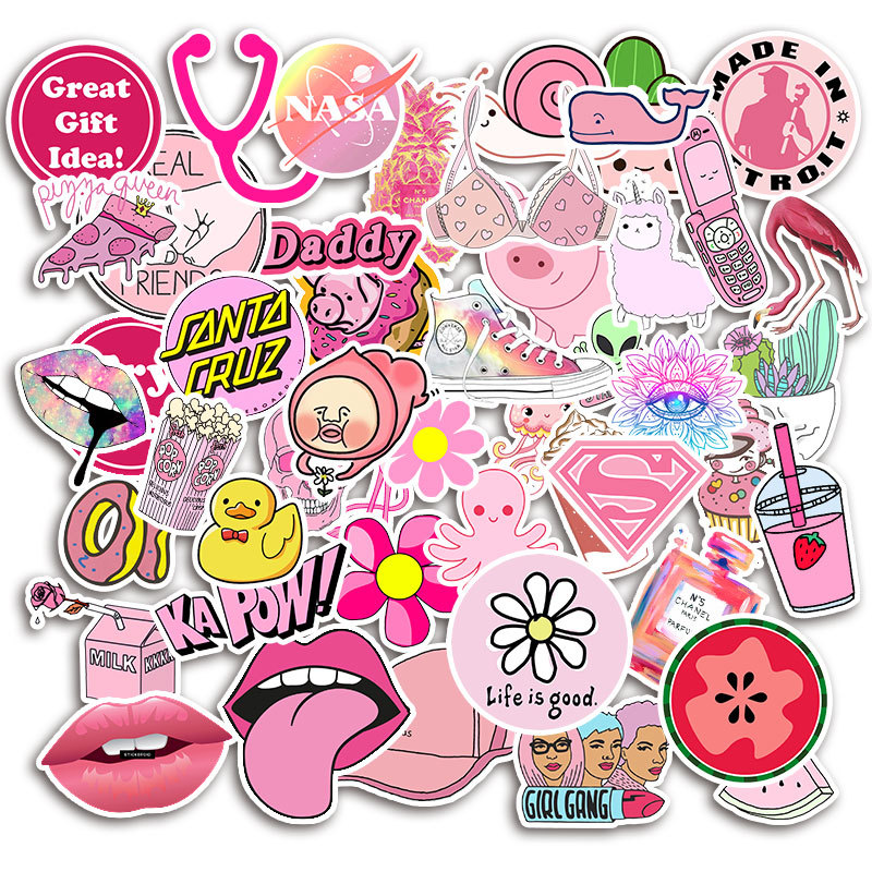 50pcs Purple Pink Vsco Stickers Pack Waterproof Cool Girl Stickers