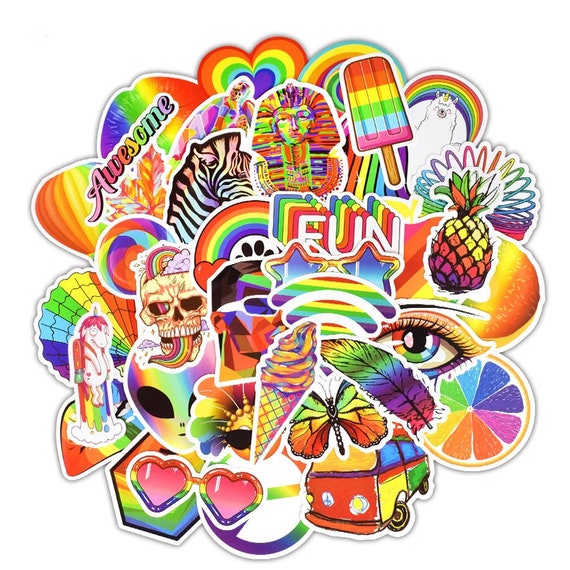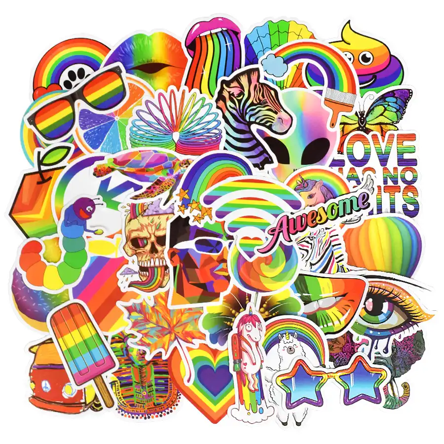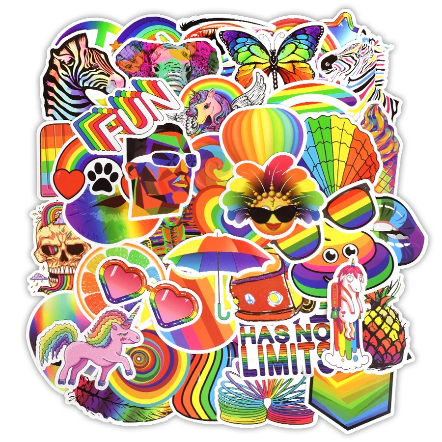 50pcs Rainbow Stickers Pack For On The Laptop Fridge Phone