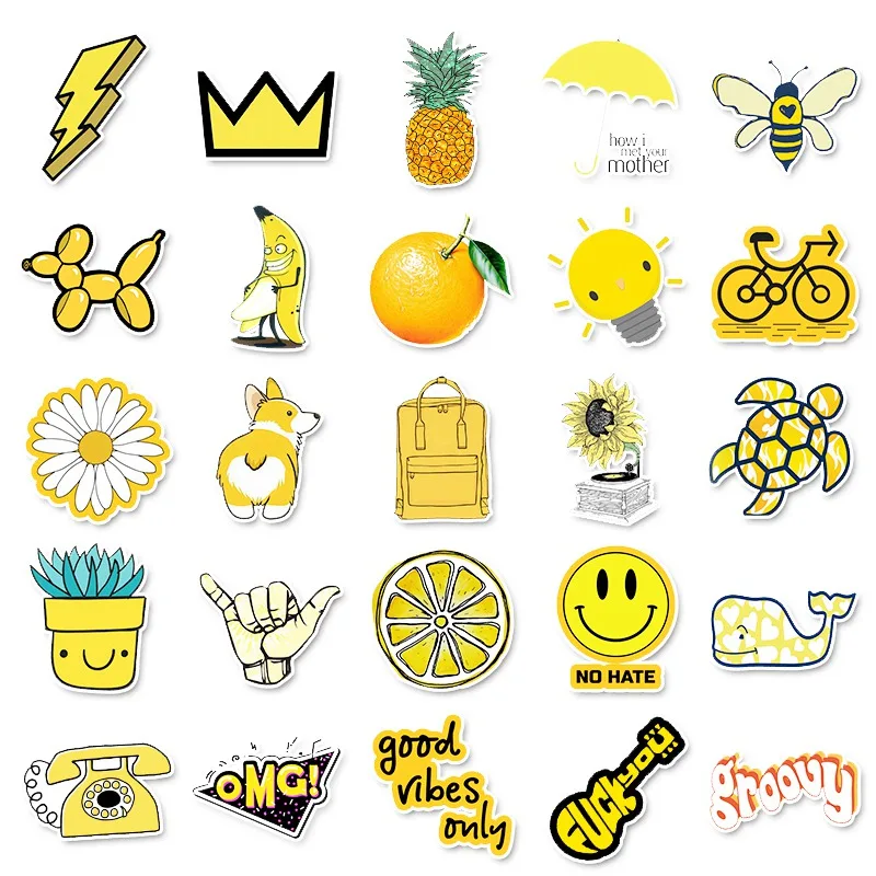 50 Pcs Cartoon Yellow Vsco Stickers Upstate Sticker