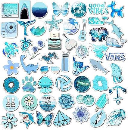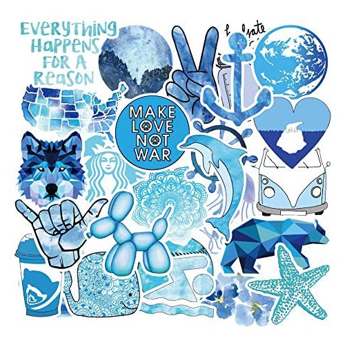 50 Blue Vsco Sticker Bomb Cute Cool Trendy Skateboard Laptop Water