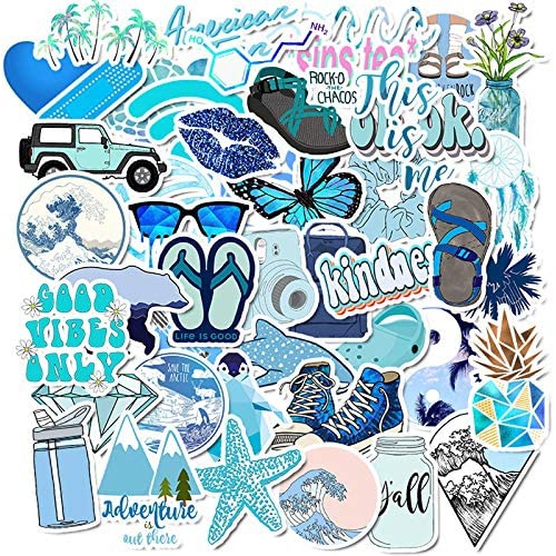 Vsco Stickers For Hydro Flask 50 Pcs Blue Waterproof Water