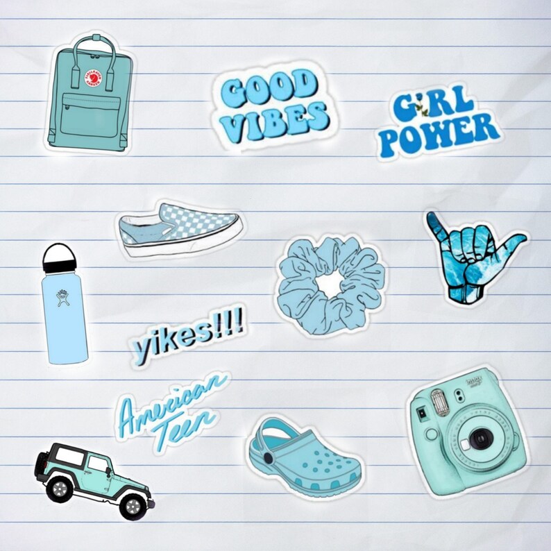 Vsco Girls Light Blue Yellow Stickers For Bottle Phone Case Laptop