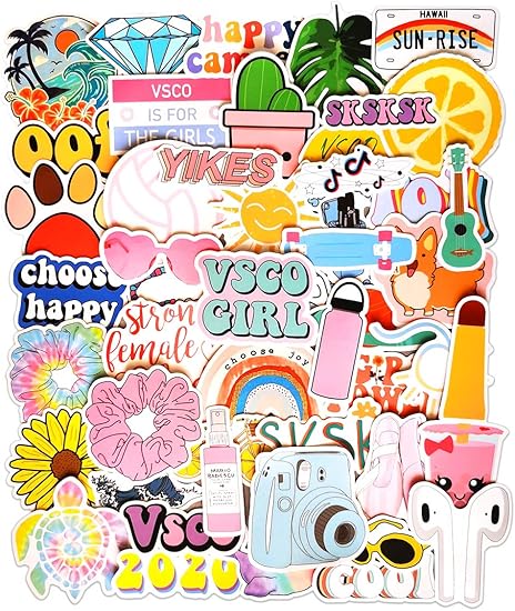 50 Pcs Cute Vsco Stickers For Water Bottles And Hydro Flask For